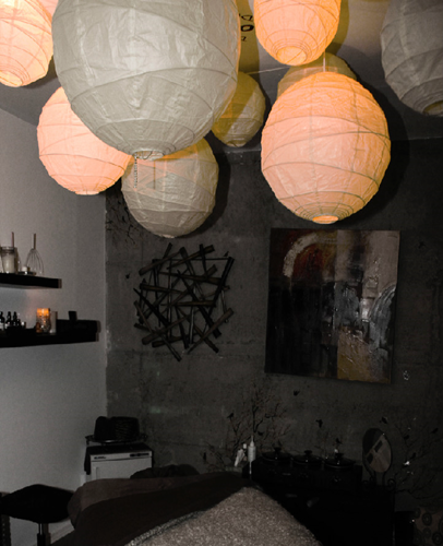 Adrianne spent 8 years working for other clinics and spas. She knew massage. She knew people. So, she cleared out half the garage and started her business. The space was creatively made, with wood floors (contact paper), ambient lighting (paper lanterns), and a privacy wall (a curtain - to separate the massage table from the car).